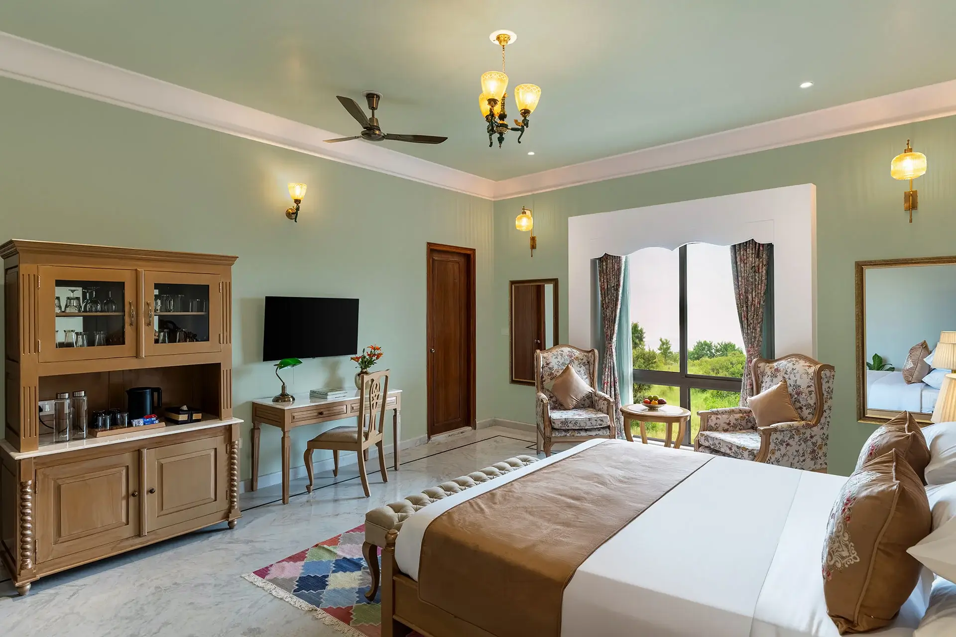 Our most indulgent room, the Swapna Lok Suite features champagne-hued interiors and elegant furniture. Wake up to a stunning sunrise view, and end your day with a soak in the luxury bathtub. Designed for guests who want every moment to feel special.